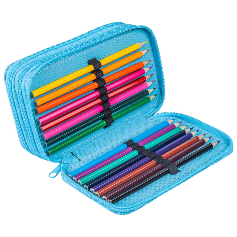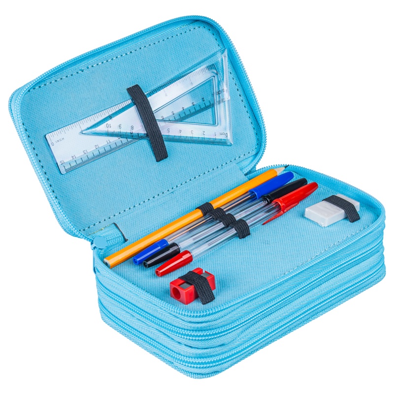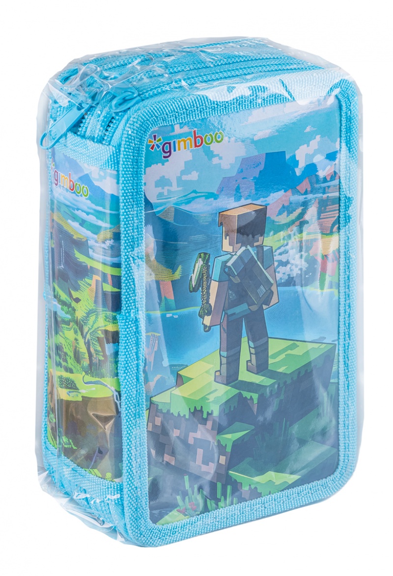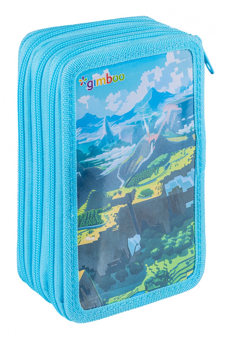 Piórnik szkolny GIMBOO, z wyposażeniem, 3 komory, Klocki 2025, niebieski, Piórniki, Artykuły szkolne NOWOŚĆ