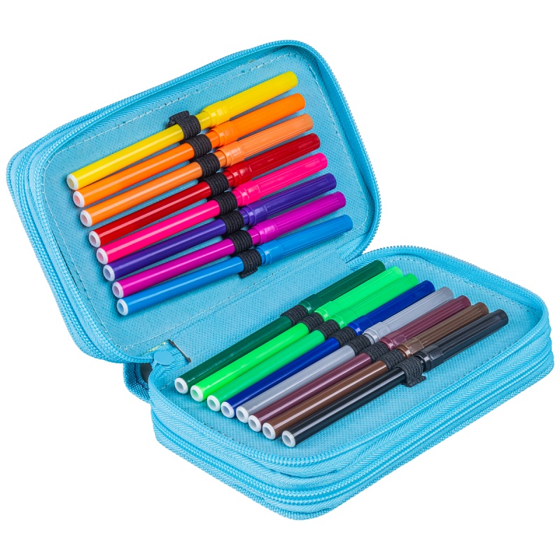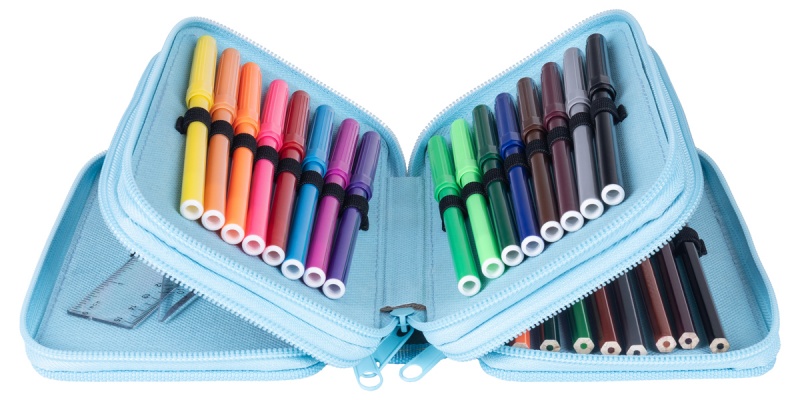 • zestaw zawiera wyposażenie (linijkę, ekierkę, 3 szt. długopisów, ołówek, gumkę, temperówkę, 16 szt. flamastrów, 16 szt. kredek)