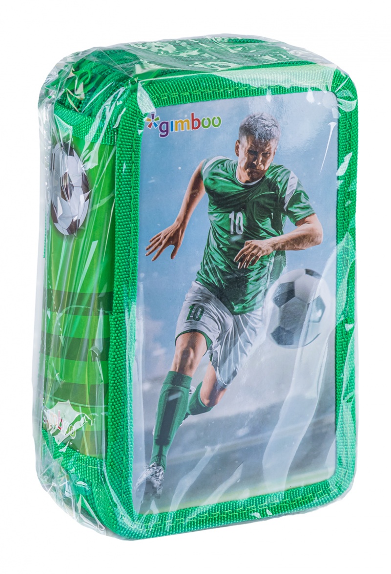 Piórnik szkolny GIMBOO, z wyposażeniem, 3 komory, piłka nożna, zielony, Piórniki, Artykuły szkolne