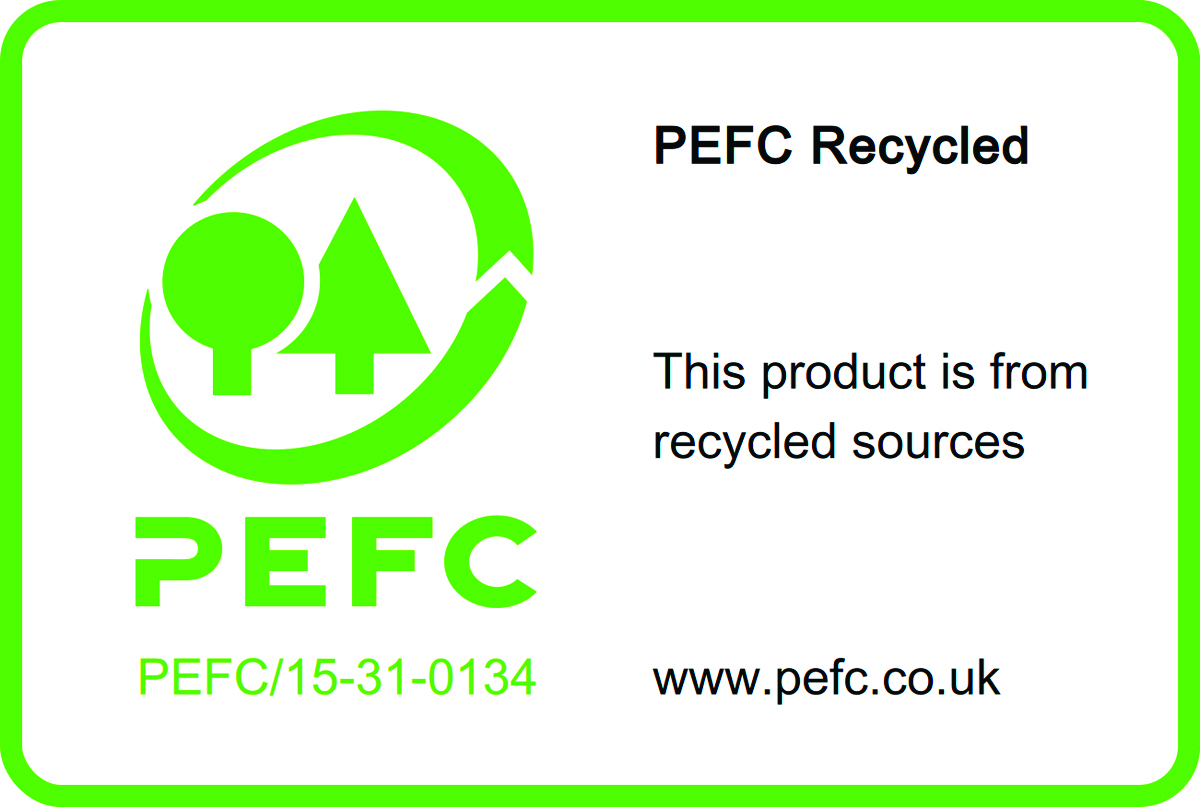 • Papier o gramaturze 80g/m2, z certyfikatem PEFC Recycled, bielony bez użycia chloru. Akrylowy klej repozycjonowalny 3M w technologii mikrosferycznej, w 60% z roślin, na bazie wody. Po użyciu produkt nadaje się do recyklingu.