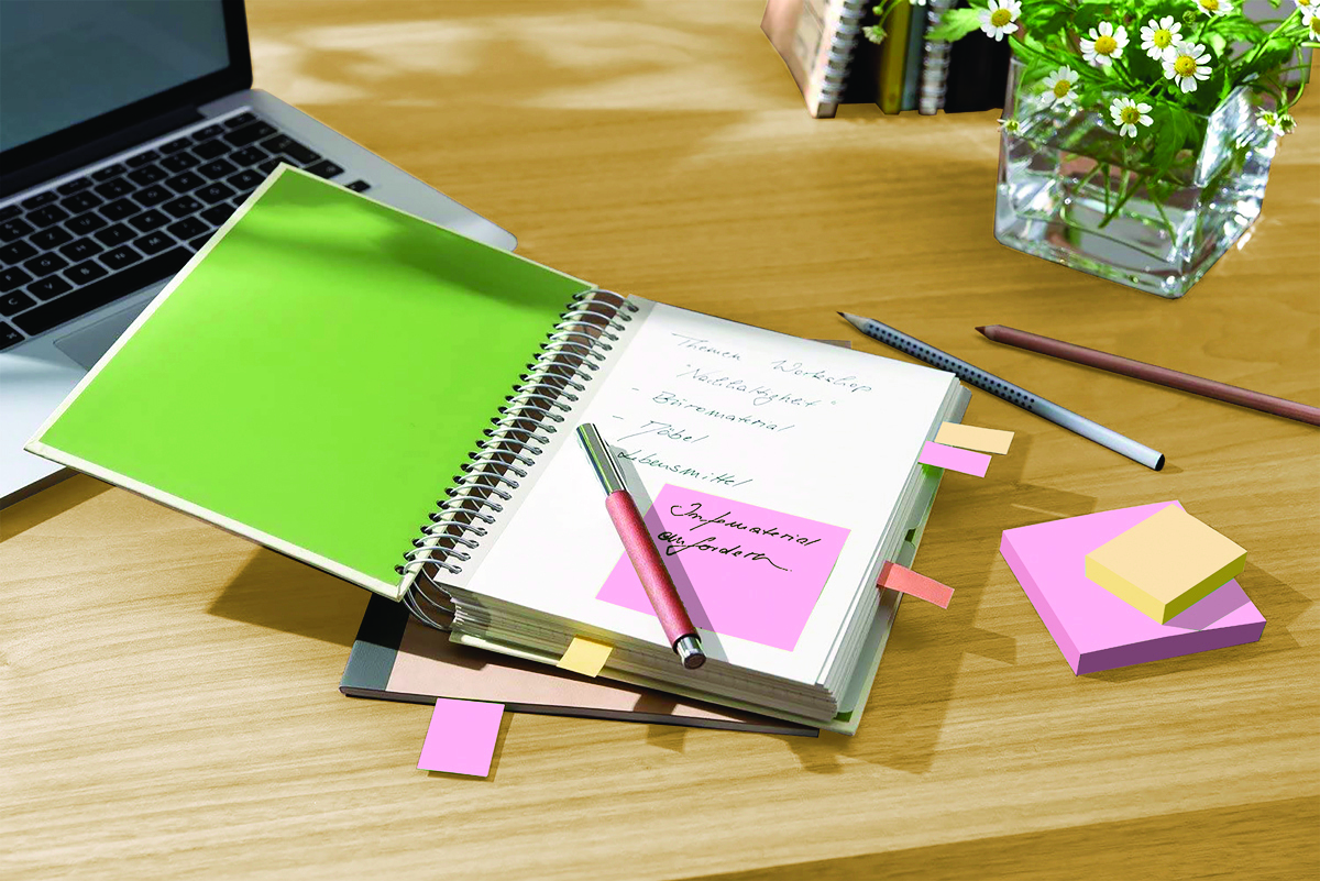 • Kolorowe karteczki samoprzylepne Post-it® świetnie się wyróżniają i przykuwają uwagę do ważnych informacji.