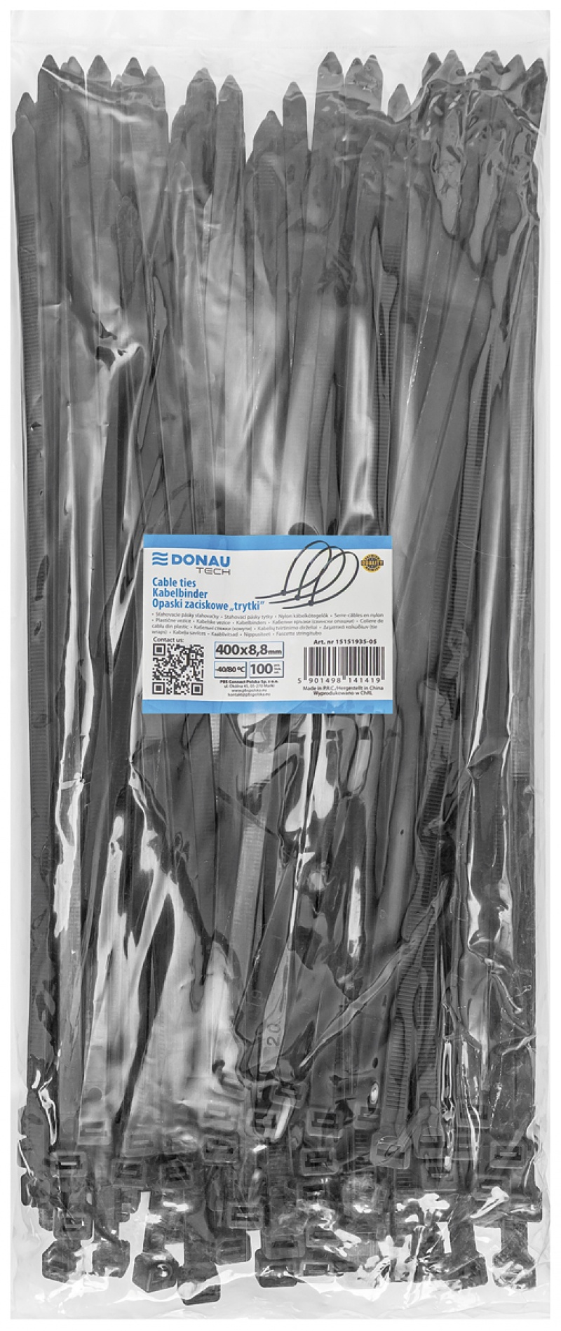 Nazwa produktuOpaski zaciskowe/trytytki DONAU TECH, 400x8,8mm, 100szt., temp. -40/80, czarne