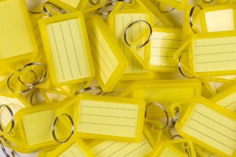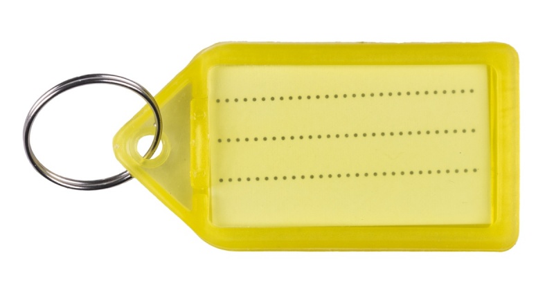 zawieszki na klucze, wyposażone w etykietkę opisową oraz kółeczko o średnicy 15mm łączące zawieszkę z kluczem…